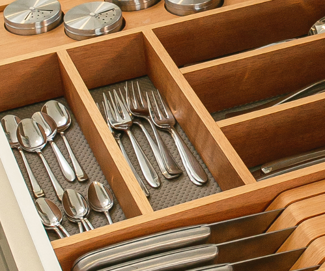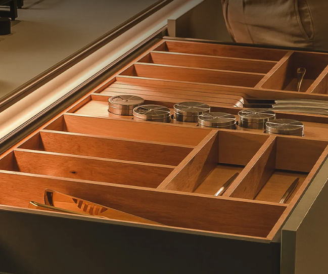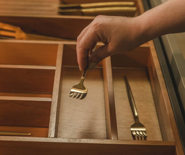 Chega de gavetas desorganizadas. Com os novos divisores e organizadores da INK, talheres, utensílios e acessórios ganham um lugar definido. Tudo pensado para tornar o dia a dia mais prático, com um toque refinado.